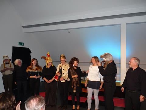 Bei eisiger Kälte haben eine Begine (Chatrina Niederberger), ein Wiler Bock (Walter Dönni), ein Marktweib (Kathrin Darman) und ein Bierbrauer (Karl Ulmer) die Neujahrsbegrüssung der Wiler SP mit